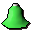 A bauble shaped like a bell painted green.